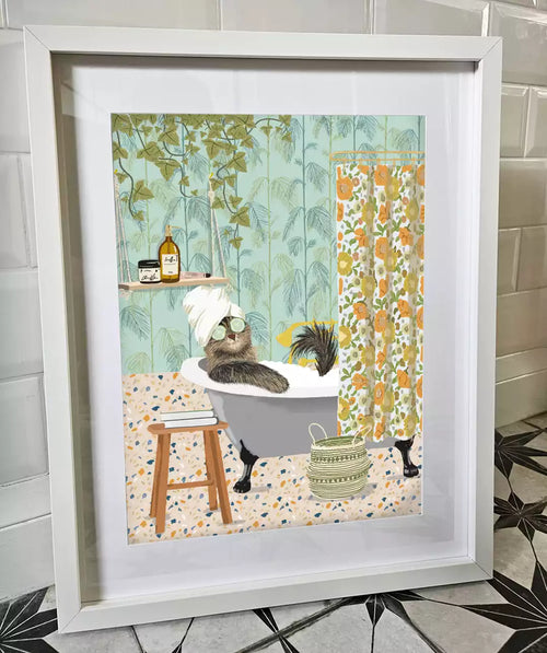 Custom Cat In The Bath Print - Fun Bathroom Art